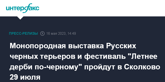 Монопородная выставка Русских черных терьеров и фестиваль "Летнее дерби по-черному" пройдут в Сколково 29 июля