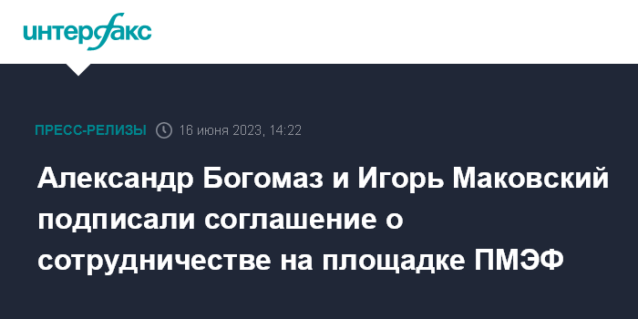 Александр Богомаз и Игорь Маковский подписали соглашение о сотрудничестве на площадке ПМЭФ