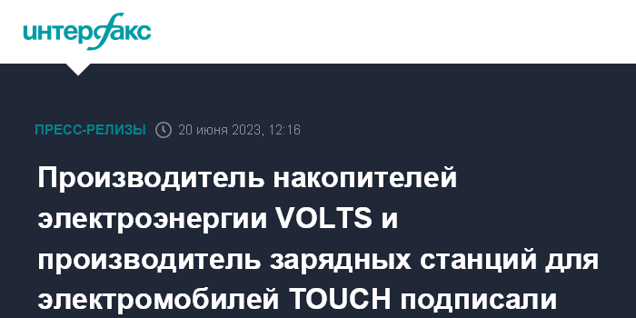 Производитель накопителей электроэнергии VOLTS и производитель зарядных станций для электромобилей TOUCH подписали уникальное партнерское соглашение