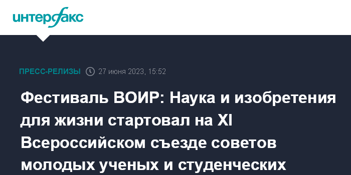 Фестиваль ВОИР: Наука и изобретения для жизни стартовал на XI Всероссийском съезде советов молодых ученых и студенческих научных обществ