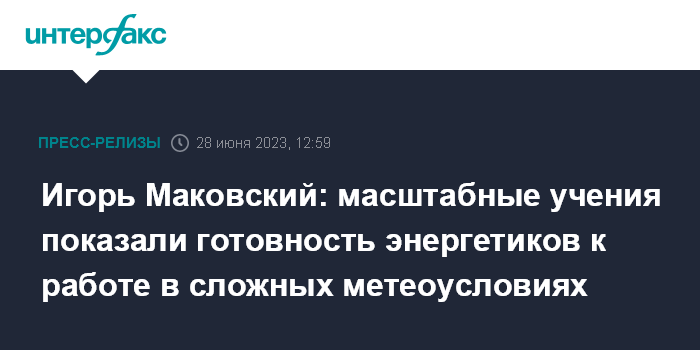 Игорь Маковский: масштабные учения показали готовность энергетиков к работе в сложных метеоусловиях