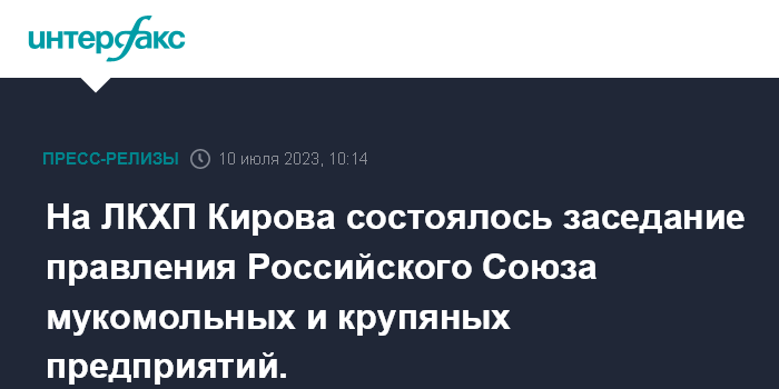 На ЛКХП Кирова состоялось заседание правления Российского Союза мукомольных и крупяных предприятий.