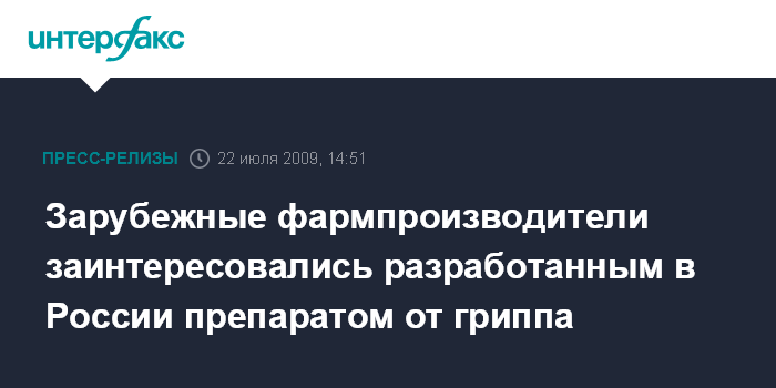 Зарубежные фармпроизводители заинтересовались разработанным в России препаратом от гриппа