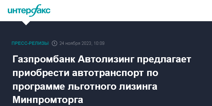 Газпромбанк Автолизинг предлагает приобрести автотранспорт по программе льготного лизинга Минпромторга