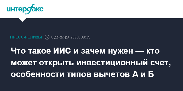 Конец календарного года — традиционное время, когда инвесторы спешат открыть ИИС (индивидуальный инвестиционный счет). Это брокерский счет, который предназначен для инвестиций на фондовом рынке сроком от трех лет. Главное его преимущество — возможность получения налоговых льгот: либо возвращение части уплаченного налога на доходы физических лиц (НДФЛ), либо отсутствие удержания налога на прибыль.