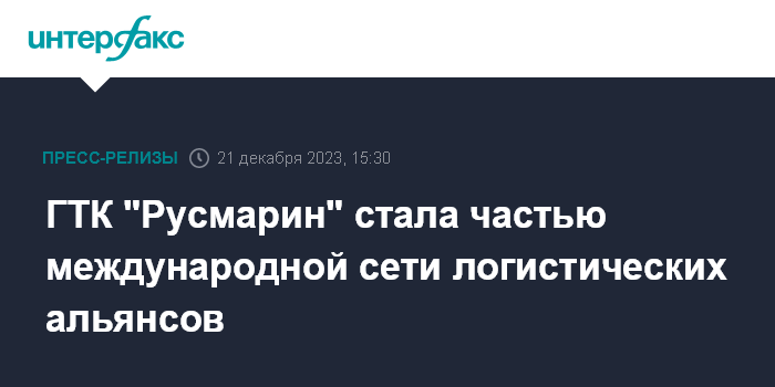 ГТК "Русмарин" стала частью международной сети логистических альянсов