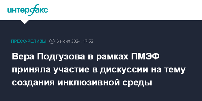 Вера Подгузова в рамках ПМЭФ приняла участие в дискуссии на тему создания инклюзивной среды