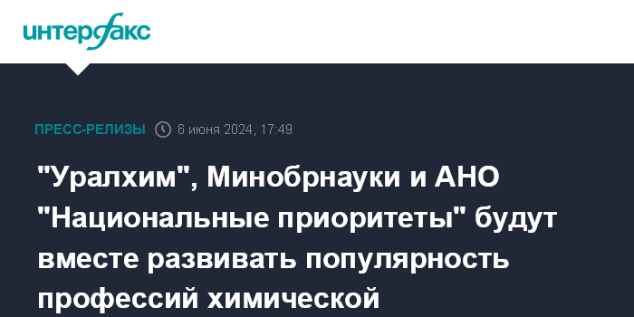 "Уралхим", Минобрнауки и АНО "Национальные приоритеты" будут вместе развивать популярность профессий химической промышленности
