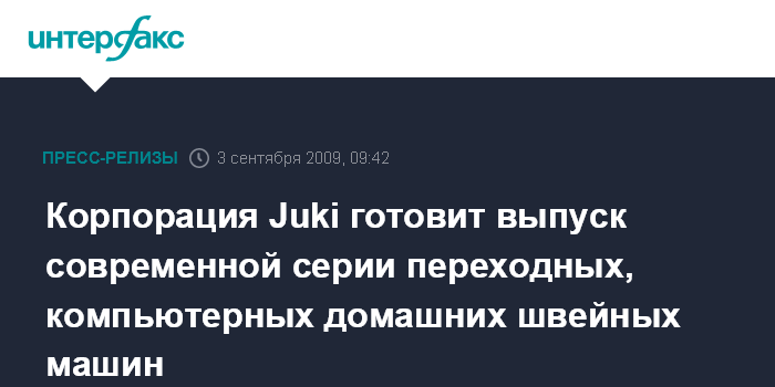 Business Wire- Корпорация Juki готовит выпуск, современной серии переходных, компьютерных домашних швейных машин
