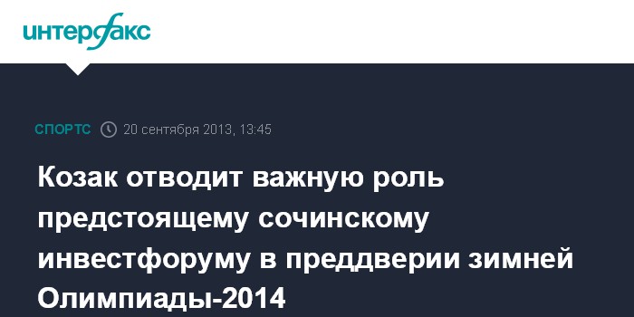 Козак отводит важную роль предстоящему сочинскому инвестфоруму в преддверии зимней Олимпиады-2014