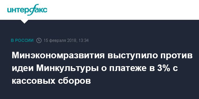 Минэкономразвития выступило против идеи Минкультуры о платеже в 3% с кассовых сборов