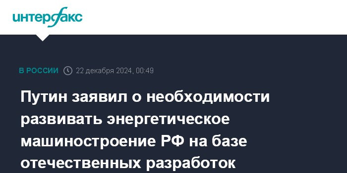 Путин заявил о необходимости развивать энергетическое машиностроение РФ на базе отечественных разработок