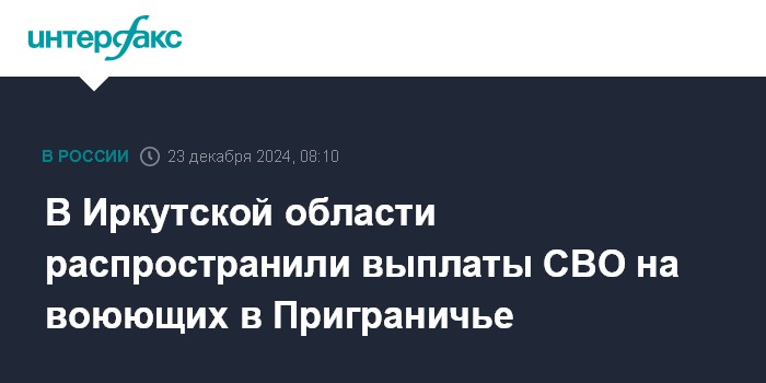 В Иркутской области распространили выплаты СВО на воюющих в Приграничье