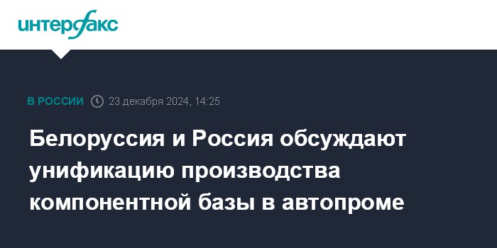 Ранее в декабре белорусский Минпром сообщал, что на переговорах Ефимова и главы Минпромторга России Антона Алиханова было подписано соглашение, регулирующее единые подходы в развитии автомобилестроения двух стран. Другие подробности не уточнялись.