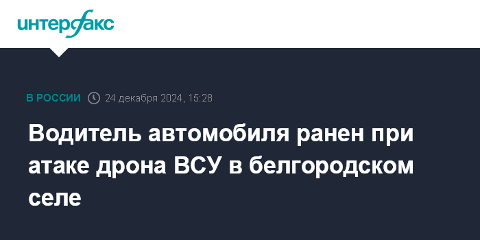 Москва. 24 декабря. INTERFAX.RU - Три населенных пункта Белгородской области подверглись атакам беспилотников ВСУ, есть пострадавший, сообщил глава региона Вячеслав Гладков во вторник.