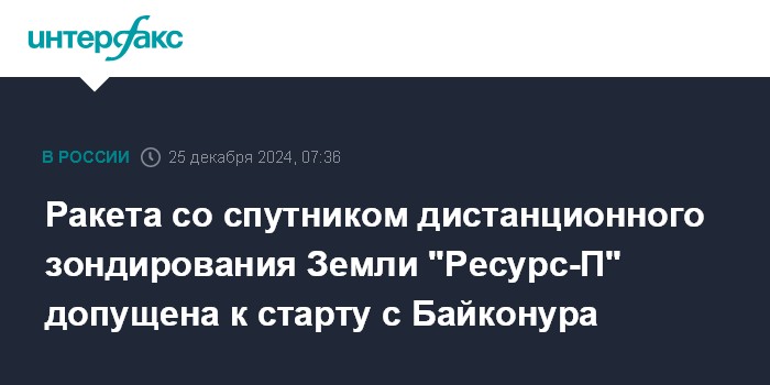 Ракета со спутником дистанционного зондирования Земли "Ресурс-П" допущена к старту с Байконура