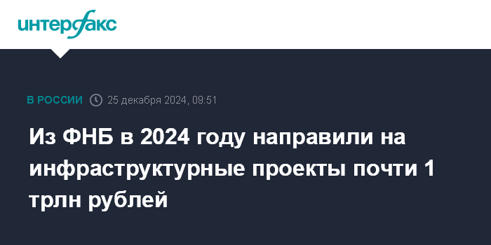 Из ФНБ в 2024 году направили на инфраструктурные проекты почти 1 трлн рублей