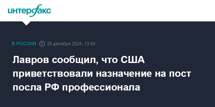 Москва. 25 декабря. INTERFAX.RU - США поприветствовали предложенную Россией кандидатуру посла РФ в Вашингтоне, он отправится в страну в "оптимальные сроки", заявил министр иностранных дел Сергей Лавров.