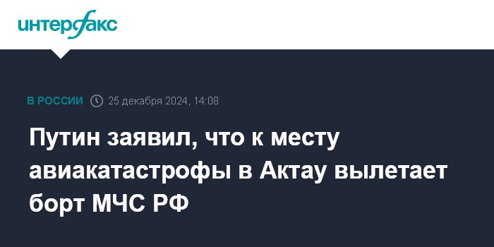 Путин заявил, что к месту авиакатастрофы в Актау вылетает борт МЧС РФ