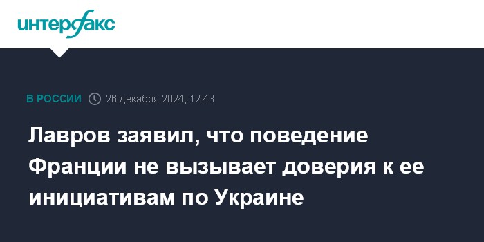 Лавров заявил, что поведение Франции не вызывает доверия к ее инициативам по Украине