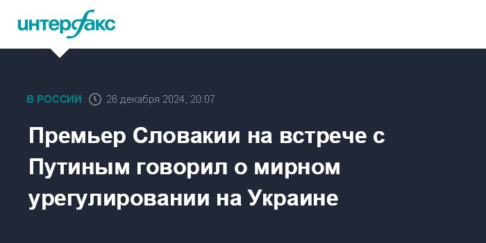 Москва. 26 декабря. INTERFAX.RU - Президент РФ Владимир Путин сообщил, что во время его встречи с премьером Словакии Робертом Фицо тот, главным образом, говорил о мирном регулировании на Украине.