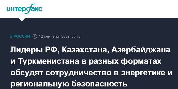 Лидеры РФ, Казахстана, Азербайджана и Туркменистана в разных форматах обсудят сотрудничество в энергетике и региональную безопасность