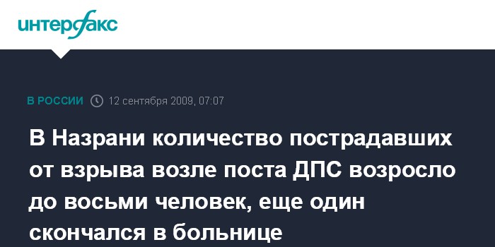 В Назрани количество пострадавших от взрыва возле поста ДПС возросло до восьми человек, еще один скончался в больнице