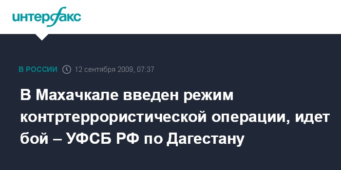 "В Махачкале введен режим контртеррористической операции", - сообщили агентству "Интерфакс-Юг" в УФСБ РФ по Дагестану.