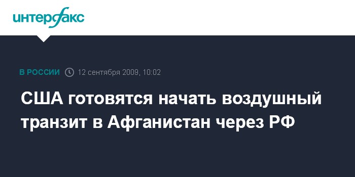 Москва. 12 сентября. INTERFAX.RU - США начнут воздушный транзит в Афганистан через Россию в ближайшие недели или месяцы и хотели бы как можно больше разнообразить маршруты доставки грузов в эту страну, заявляет замгоссекретаря по вопросам Европы и Евразии Филипп Гордон.