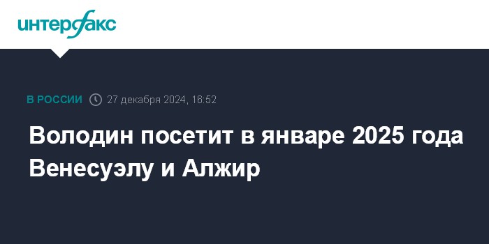 Володин посетит в январе 2025 года Венесуэлу и Алжир