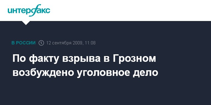 Москва. 12 сентября. INTERFAX.RU - Ленинский межрайонный следственный отдел возбудил уголовное дело по факту взрыва в Грозном, который произвел в субботу утром террорист-смертник, сообщили "Интерфаксу" в пресс-службе следственного комитета при прокуратуре по Чеченской республике.