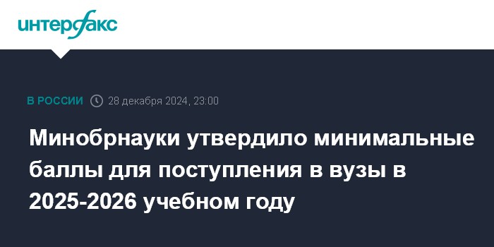 Москва. 28 декабря. INTERFAX.RU - Минобрнауки России опубликовало приказ о минимальных баллах Единого госэкзамена на 2025-2026 учебный год, которые необходимы для поступления в вузы.