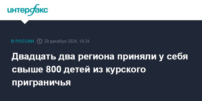 Москва. 29 декабря. INTERFAX.RU - С начала вторжения вооруженных сил Украины в Курскую область 22 региона приняли у себя свыше 800 детей, сообщил врио губернатора Александр Хинштейн.