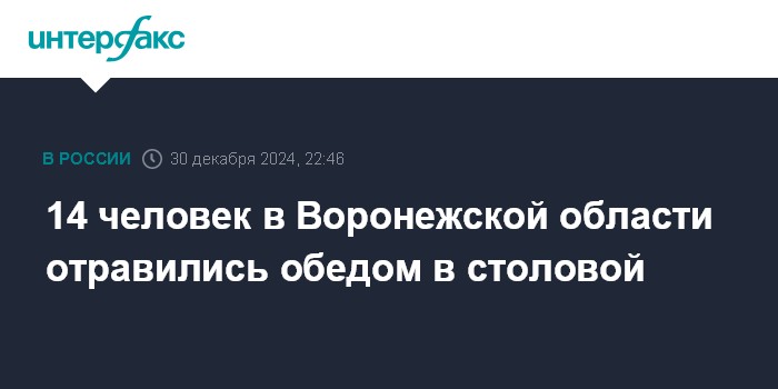 Москва. 30 декабря. INTERFAX.RU - В Рамонском районе Воронежской области 14 человек госпитализированы с признаками отравления после обеда в столовой, сообщила пресс-служба областного правительства.