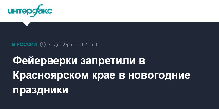 "Ввести с 31 декабря 2024 года по 8 января 2025 года включительно на территории Красноярского края ограничение на использование организациями, индивидуальными предпринимателями и гражданами пиротехнических изделий", - говорится в документе.