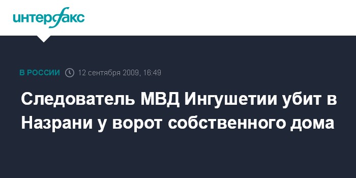 Назрань. 12 сентября. ИНТЕРФАКС-ЮГ - В Назрани в районе "Центр-Камаз" неизвестные лица застрелили следователя следственного отдела МВД Ингушетии Азамата Берсанова.
