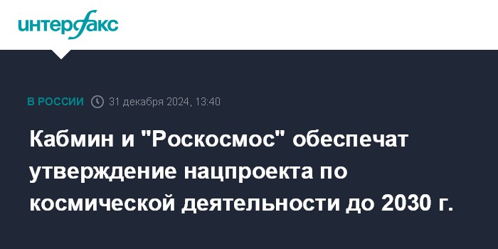 "Правительству Российской Федерации совместно с Госкорпорацией "Роскосмос" обеспечить с учетом положений перечня поручений президента РФ от 18 декабря 2023 года № Пр-2471 утверждение национального проекта по развитию космической деятельности на период до 2030 года и на перспективу до 2036 года, комплексно определяющего задачи, мероприятия, целевые показатели и ожидаемые результаты ее развития", - говорится в перечне поручений по итогам заседания Совета по стратегическому развитию и национальным проектам.
