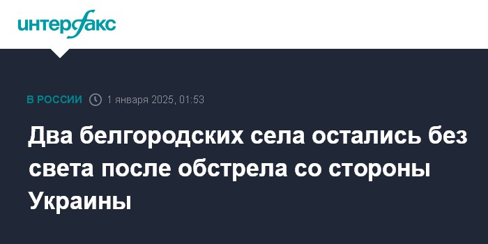 Москва. 1 января. INTERFAX.RU - В результате украинского обстрела Шебекинского городского округа в Белгородской области отключена электроэнергия в двух селах, сообщил в среду глава региона Вячеслав Гладков.