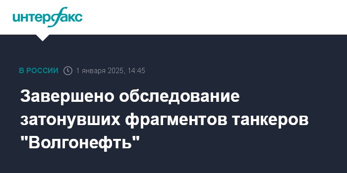 Москва. 1 января. INTERFAX.RU - Специалисты Морспасслужбы завершили обследование затонувших фрагментов танкеров "Волгонефть" в Краснодарском крае, утечек мазута из фрагментов нет, сообщает оперативный штаб региона.