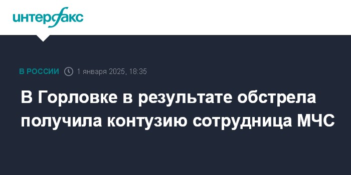 Москва. 1 января. INTERFAX.RU - В Горловке под обстрел попала пожарная часть, сотрудница МЧС получила контузию, сообщили в МЧС России.