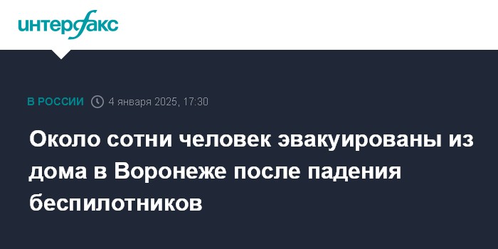 Москва. 4 января. INTERFAX.RU - Оперативные службы работают на местах падений нескольких БПЛА на территории Левобережного района Воронежа, из одного дома эвакуировали около сотни человек, эвакуация проводится в еще одном доме. Об этом сообщил в субботу губернатор региона Александр Гусев.