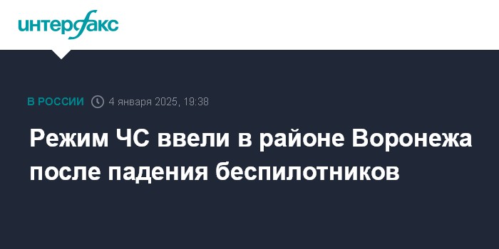 Москва. 4 января. INTERFAX.RU - Режим ЧС введен в Левобережном районе Воронежа после падения БПЛА, сообщил мэр Сергей Петрин.