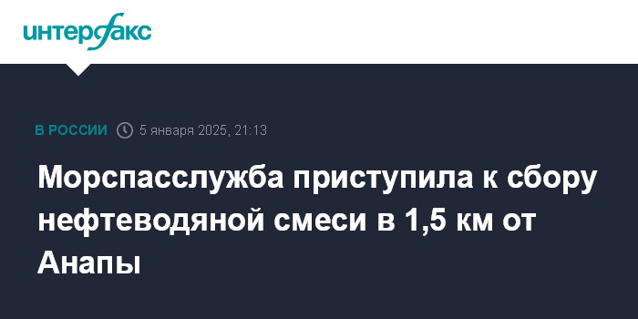 Москва. 5 января. INTERFAX.RU - Маслянистое пятно от берега центрального пляжа Анапы в сторону поселка Витязево обнаружила авиация МЧС в рамках мониторинга, сообщает пресс-служба МЧС РФ.