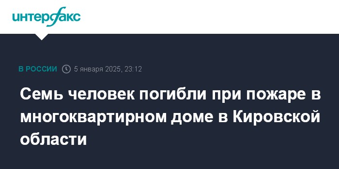 Семь человек погибли при пожаре в многоквартирном доме в Кировской области