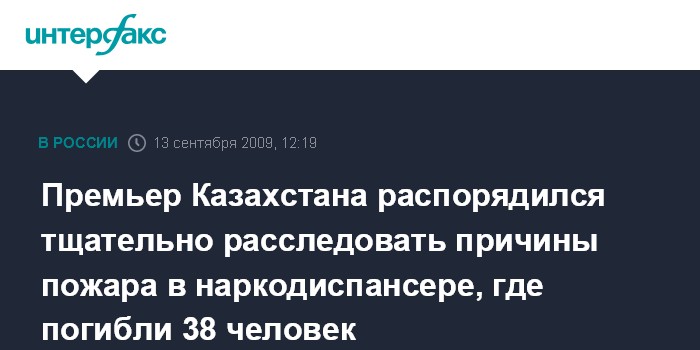 Премьер Казахстана распорядился тщательно расследовать причины пожара в наркодиспансере, где погибли 38 человек