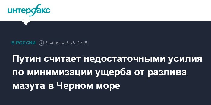 Москва. 9 января. INTERFAX.RU - Президент РФ Владимир Путин назвал "явно недостаточными" усилия по минимизации ущерба от разлива мазута в Керченском проливе.