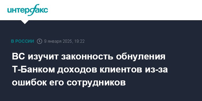 ВС изучит законность обнуления Т-Банком доходов клиентов из-за ошибок его сотрудников