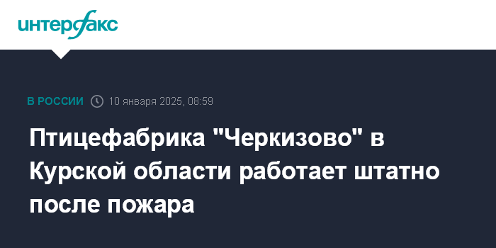 В четверг о возгорании на предприятии сообщил врио губернатора Курской области Александр Хинштейн. В результате пожара пострадал 40-летний мужчина. С ожогами рук он был доставлен в больницу. Возможной причиной пожара Хинштейн назвал возгорание электропроводки. Информация об атаке птицефабрики БПЛА не подтвердилась. Площадь пожара составила порядка 5 тыс. кв. метров.