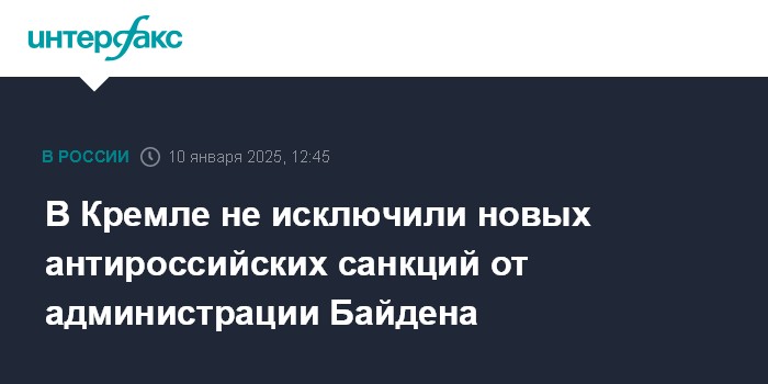 Москва. 10 января. INTERFAX.RU - В Кремле не исключают новых антироссийских санкций со стороны США, так как уходящая администрация Джо Байдена пытается оставить максимально тяжелое наследство Дональду Трампу в отношениях между Москвой и Вашингтоном, заявил на брифинге пресс-секретарь президента России Дмитрий Песков.