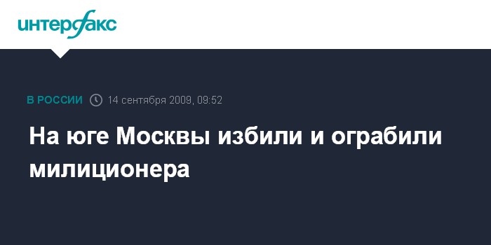 Москва. 14 сентября. INTERFAX.RU - Неизвестные напали на старшего лейтенанта милиции на юге столицы, избили и ограбили его, сообщил "Интерфаксу" источник в правоохранительных органах города в понедельник. "Старший лейтенант милиции, служащий в Управлении внутренних дел по Юго-Западному округу, обратился к коллегам около трех часов ночи в воскресенье и сообщил, что двумя часами ранее около дома N25 на Симферопольском бульваре к нему подошли двое неизвестных, избили, после чего забрали золотое кольцо, мобильный телефон, одну тысячу рублей и скрылись", - рассказал собеседник агентства. Он добавил, что общий ущерб составил 9 тыс. рублей, в настоящее время ведется розыск преступников.